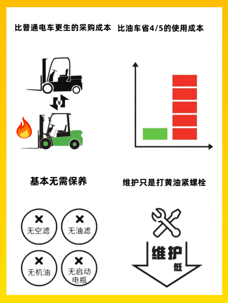 ·性能優(yōu)異:起升/傾斜、行駛、爬坡性能與內(nèi)燃車完全相同;
